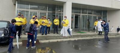 5月21日の登校時間にライオンズクラブの皆様が来校し、玄関前にて挨拶運動を実施してくださいました。
