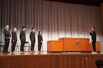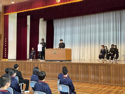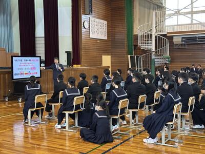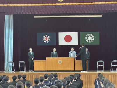 まずは、着任式での新しい先生方からの自己紹介と新生徒会長からの歓迎の挨拶にて今年度の幕明けとなりました。その後の始業式では、校長の私から今年度の学校最上位目標を全校生徒に伝え、3つのキーワード【主体性、思考力、協調性】をみんなで確認しました(目標は「学校づくりプラン」をご参照ください!)。